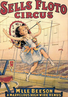 Ringling Bros, Barnum & Baily Circus (RBBBC) lost their star high wire dancer, Bird Millman in 1923. She was replaced by Berta Beeson who canceled his contract with Sells-Floto. Like Bird she wore a calf-length dress with flounce and fluff, but was now being described as “the Julian Eltinge of the Wire” which implied that her her gender was an open secret.