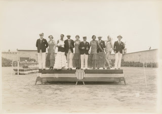 The 17th annual field meet held at San Quentin in 1930 when James B. Holohan was the acting warden. Olympic Club member, Frank G. Kane, was Master of Ceremonies. The entertainers depicted are San Quentin inmates; the cross-dressers were a popular attraction.